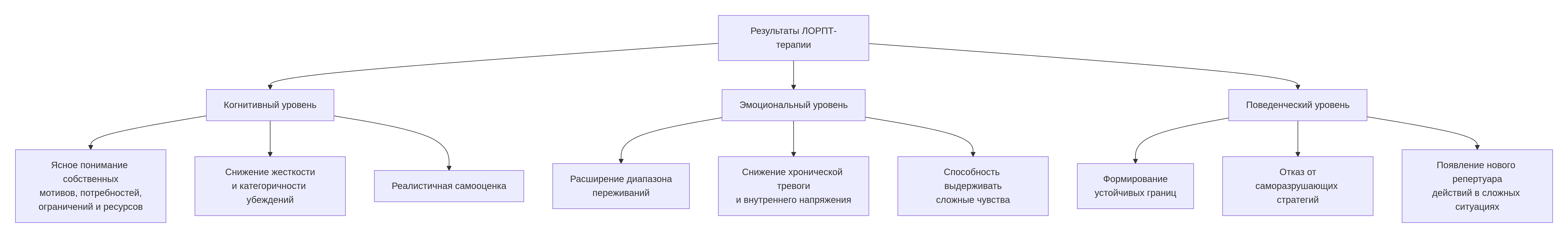 Результаты ЛОРПТ-терапии не сводятся к исчезновению конкретного симптома. Как правило, в фокусе — качественные изменения в структуре личности и системы отношений. В обобщенном виде ожидаемые эффекты можно описать так: